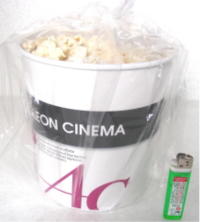 次にポップコーンとドリンクのセットを買いました。ポップコーンのサイズを御覧ください。